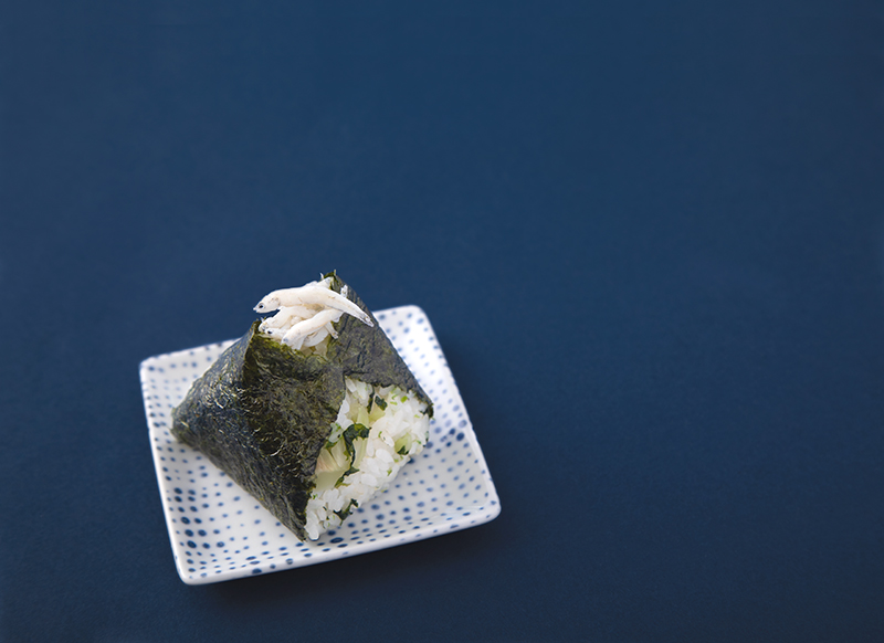 国産の「しらす干し」を広島県産の野沢菜と青海苔の混ぜごはんでおむすびにしました